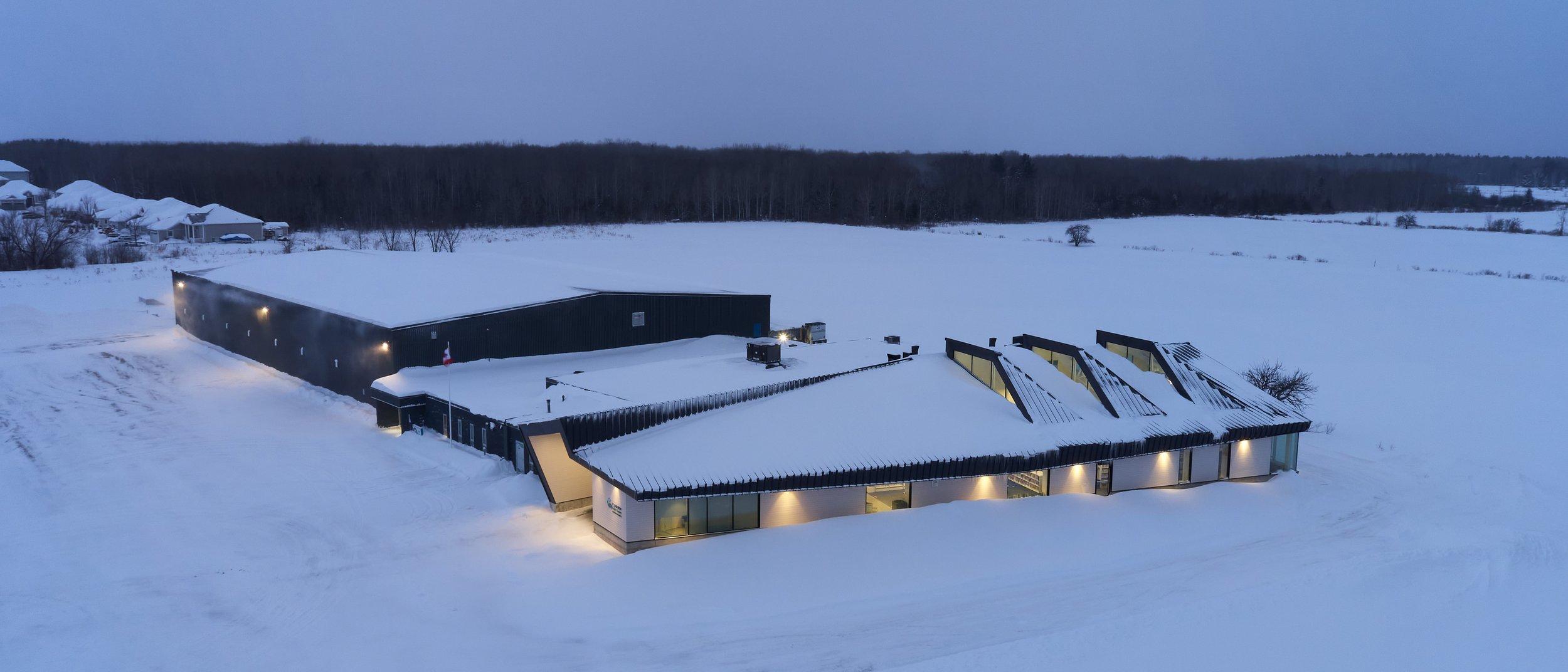 Situating the library to the east of the existing community centre will maximize views to the surrounding landscape. Driven by the typical shed/barn roof typology, the vaulting of the main space allows for natural light to flood the interior space from high clerestory windows while also gesturing to the new, iconic main entrance to the facility.