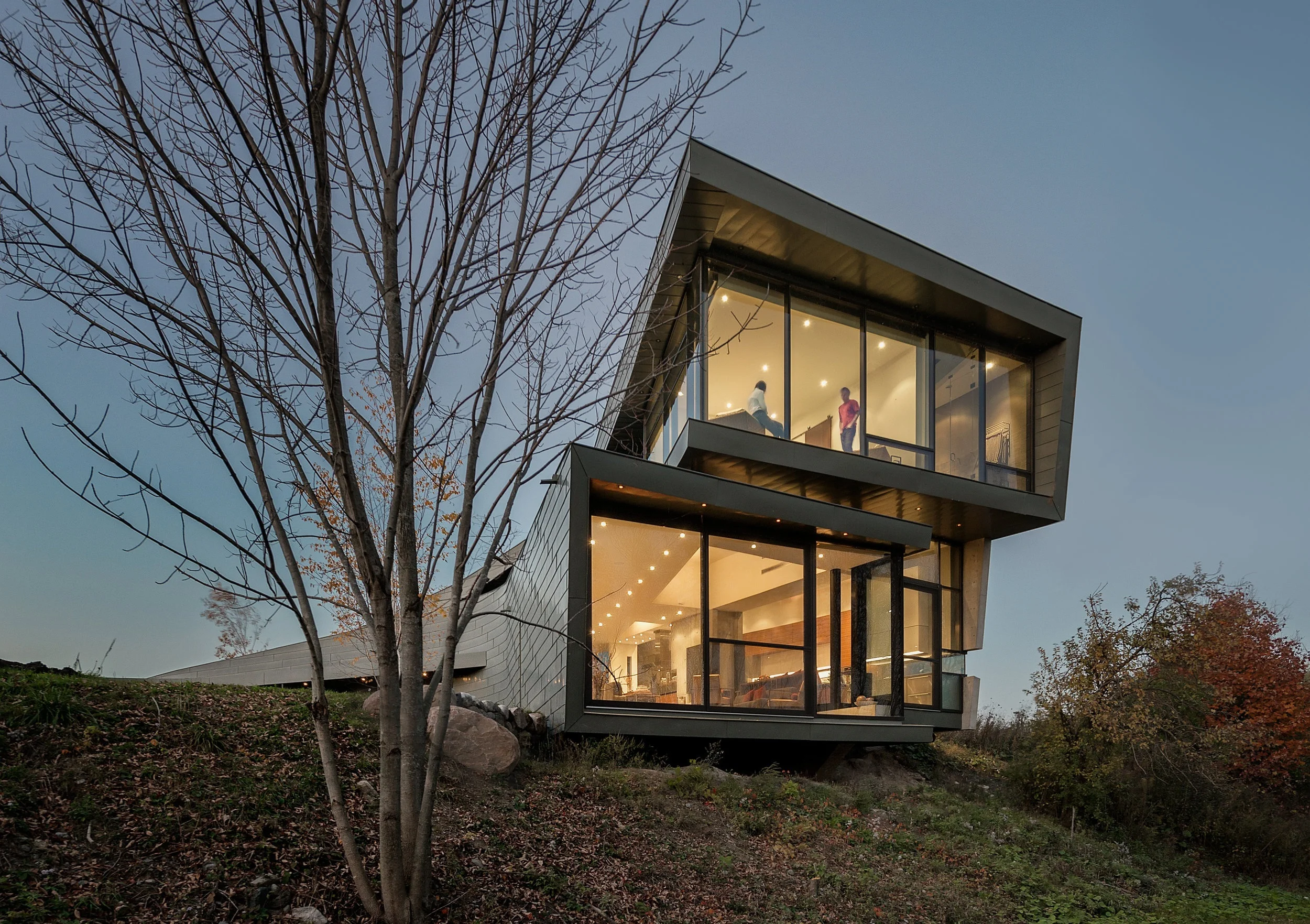From the living room, a future bridge and deck will allow owners and guests to step out of the house and float across the rail gully to the edge of Lake Ontario's magnificent bluffs.