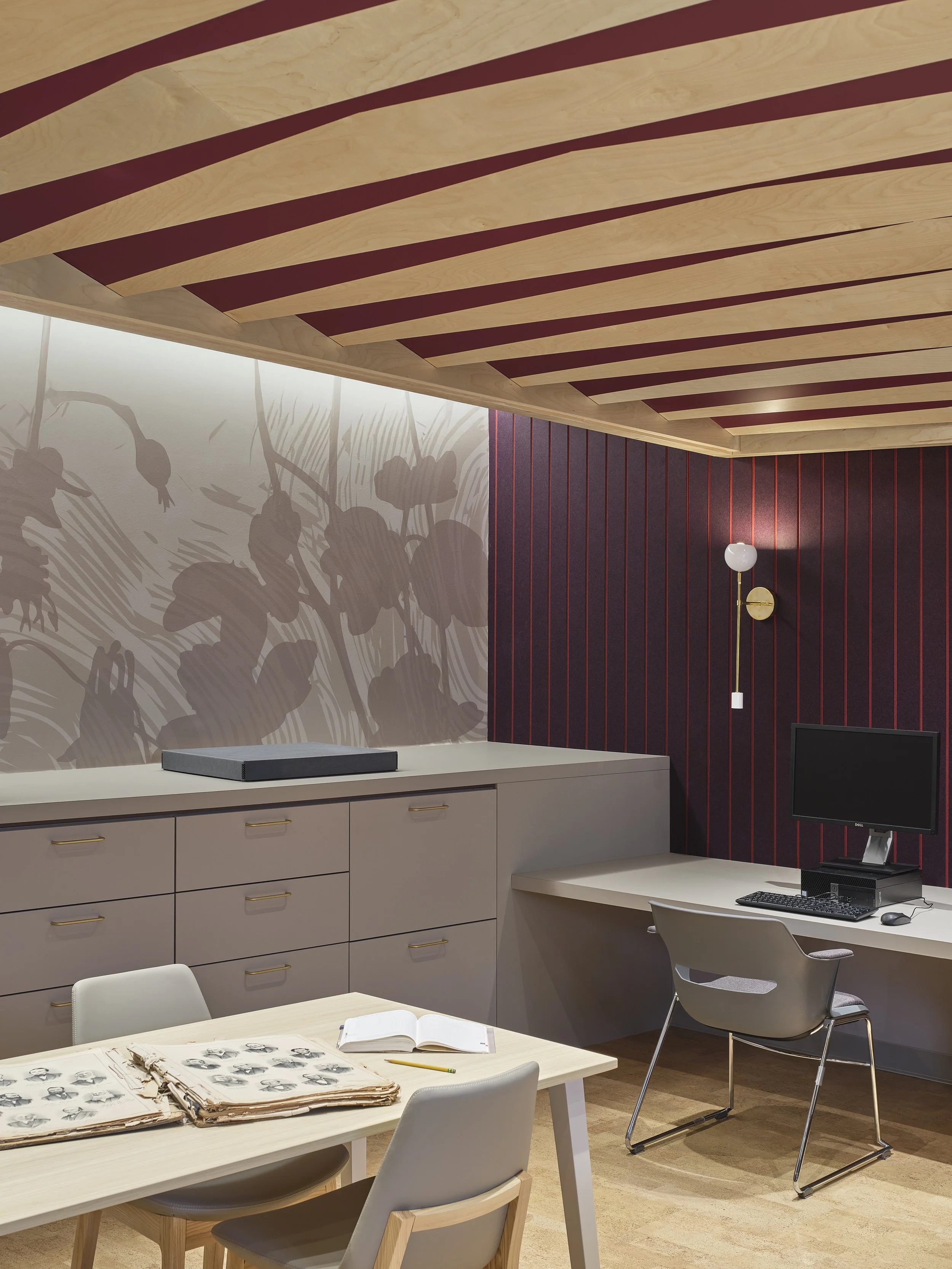 The renovation is organized around a contemporary interpretation of the traditional reading room—an environment shaped for quiet focus, patience, and close study.