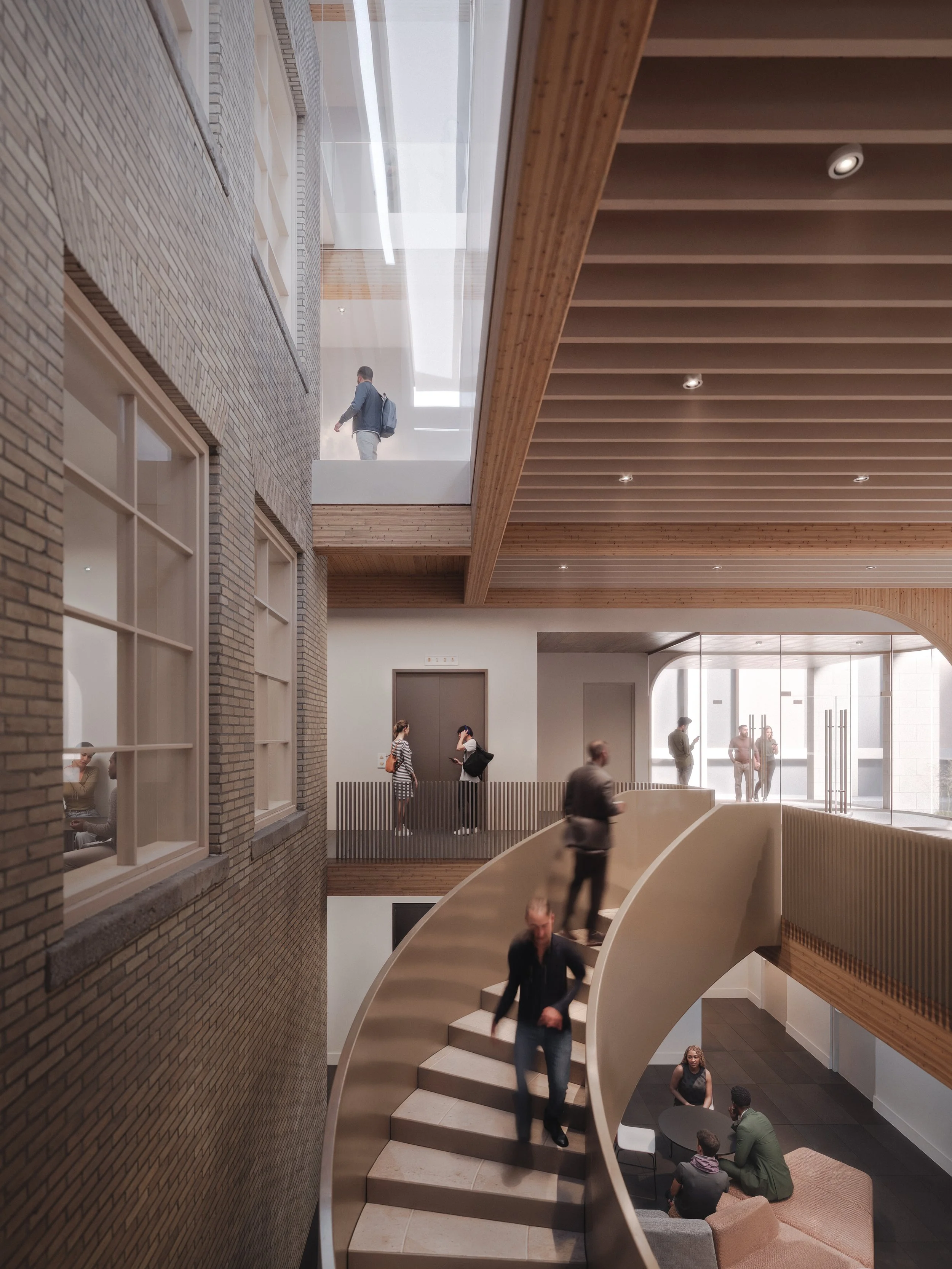Central to the proposal is a new four-storey addition that enables full accessibility and provides the spatial capacity required to consolidate dispersed functions. Conceived as a contemporary counterpart to the historic building, the addition establishes a clear distinction between old and new while maintaining a complementary scale and material presence. Within the existing structure, interventions are selective and precise, preserving heritage fabric while adapting spaces to support a range of formal and informal uses.