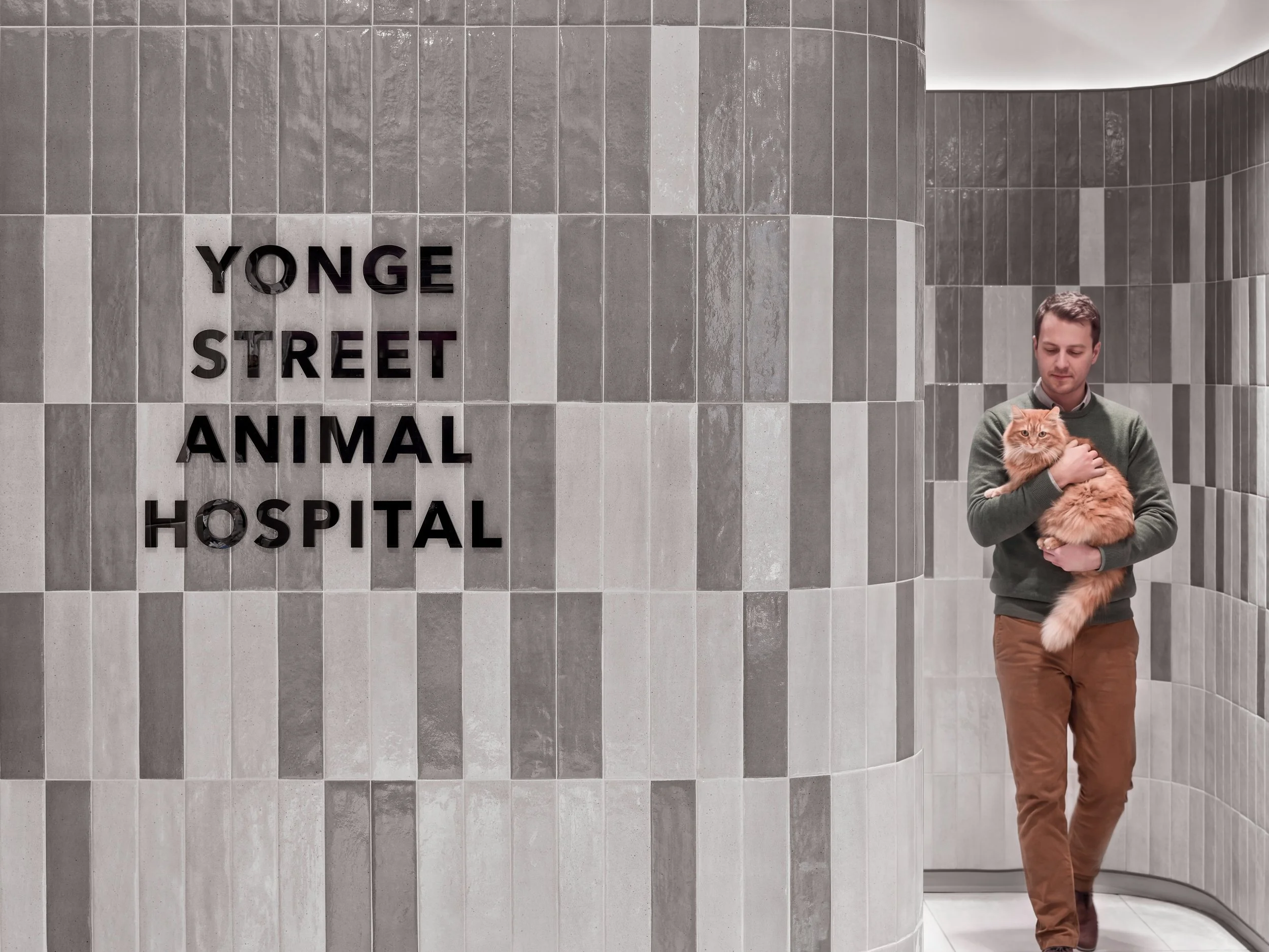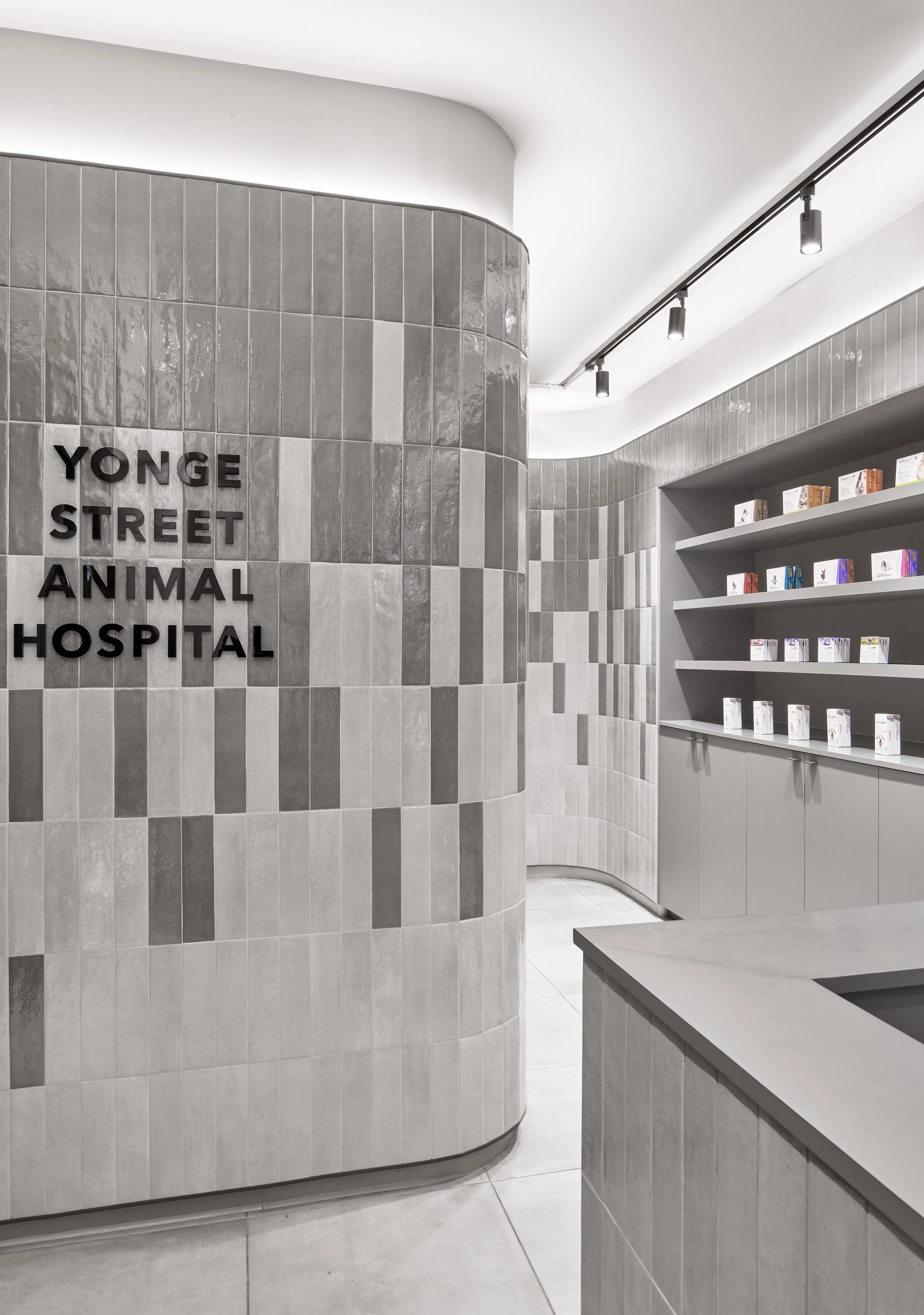 Located in midtown, the Yonge Street Animal Hospital is housed in a retail storefront on the busiest street in the city. Designed to meet the needs of pets and their owners, the robust interior receives cats and dogs of all sizes for grooming, boarding, treatment and surgeries.